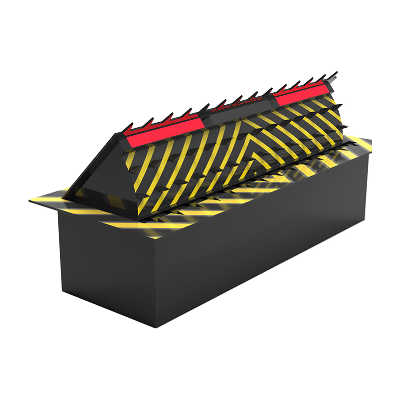 路障機(jī)(又名阻車器),整體結(jié)構(gòu)分為機(jī)座、翻轉(zhuǎn)體、液壓動(dòng)力系統(tǒng)和電氣控制系統(tǒng)組成。根據(jù)抗壓能力分為輕型、標(biāo)準(zhǔn)型和重型路障機(jī)。路障機(jī)攔截面又分為矛尖路障機(jī)和無(wú)矛尖路障機(jī)。液壓翻板路障機(jī)